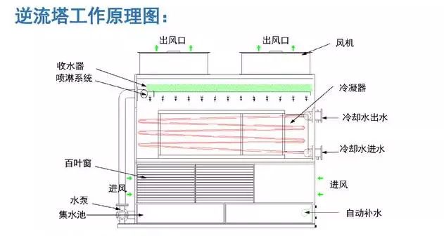 逆流塔工作原理圖:橫流塔工作原理圖: