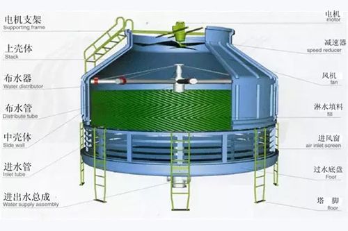 冷卻塔原理:冷卻塔是由本體、集水盤、消音毯、蜂窩式散熱片、散水系統(tǒng)、擋水板、冷卻風扇、扶梯等組成。冷卻塔原理:是用需冷卻的水經(jīng)散水系統(tǒng)散開,蜂窩式散熱片一方面將散水管來的水進一步散均勻,另一方面冷卻風